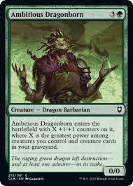 Ambitious Dragonborn enters the battlefield with X +1/+1 counters on it, where X is the greatest power among creatures you control and creature cards in your graveyard.