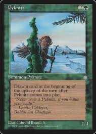 Draw a card at the beginning of the upkeep of the turn after Pyknite comes into play.