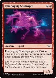 Rampaging Soulrager gets +3/+0 as long as there are two or more unlocked doors among Rooms you control.